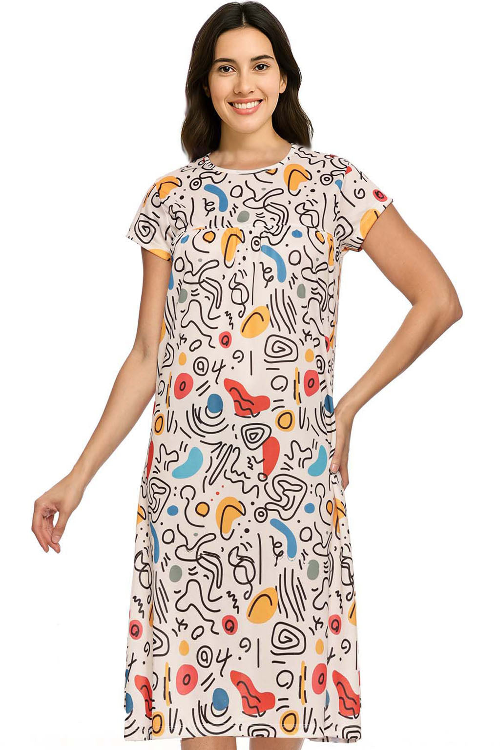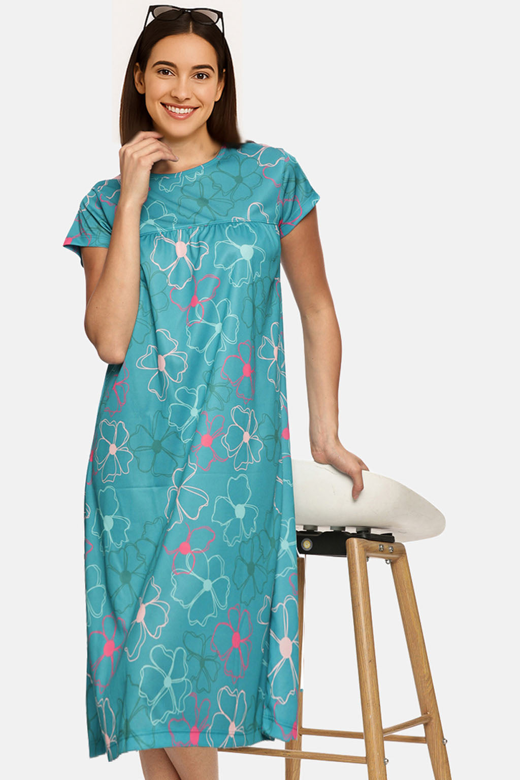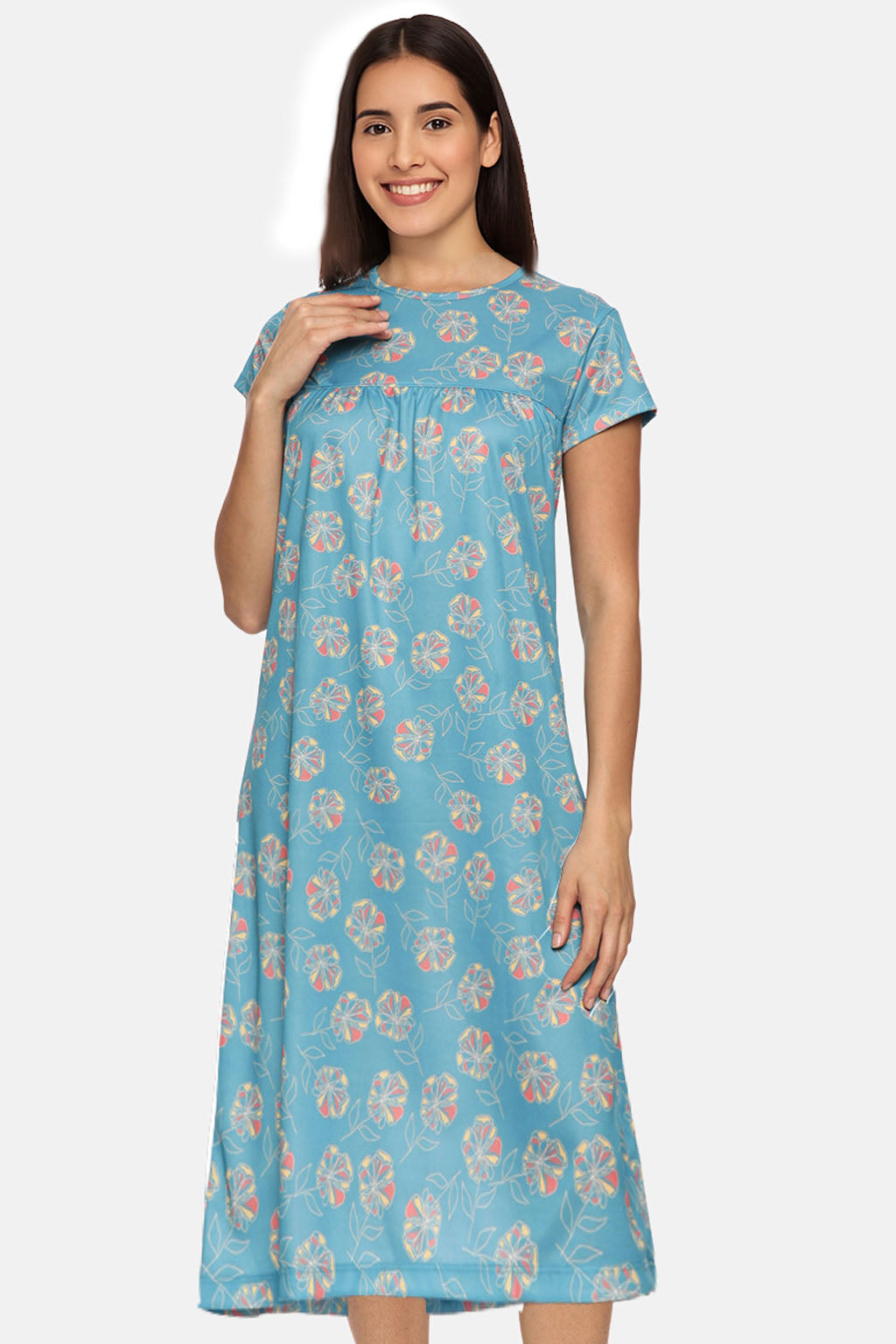 Zebu All Over Printed Round Neck Half Sleeve nightdress (pack of 1)