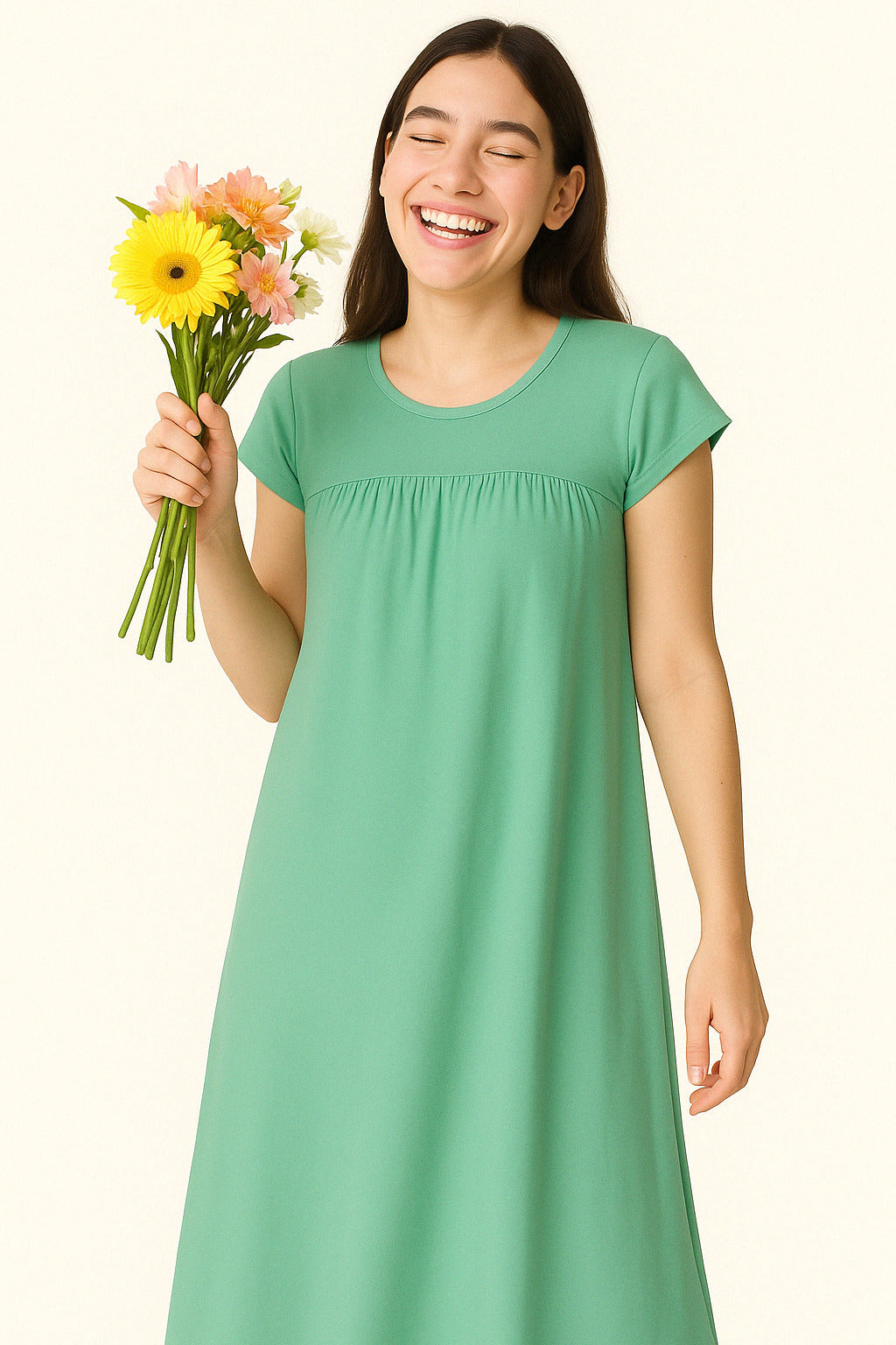 Zebu Solid Round Neck Half Sleeve nightdress (pack of 1)