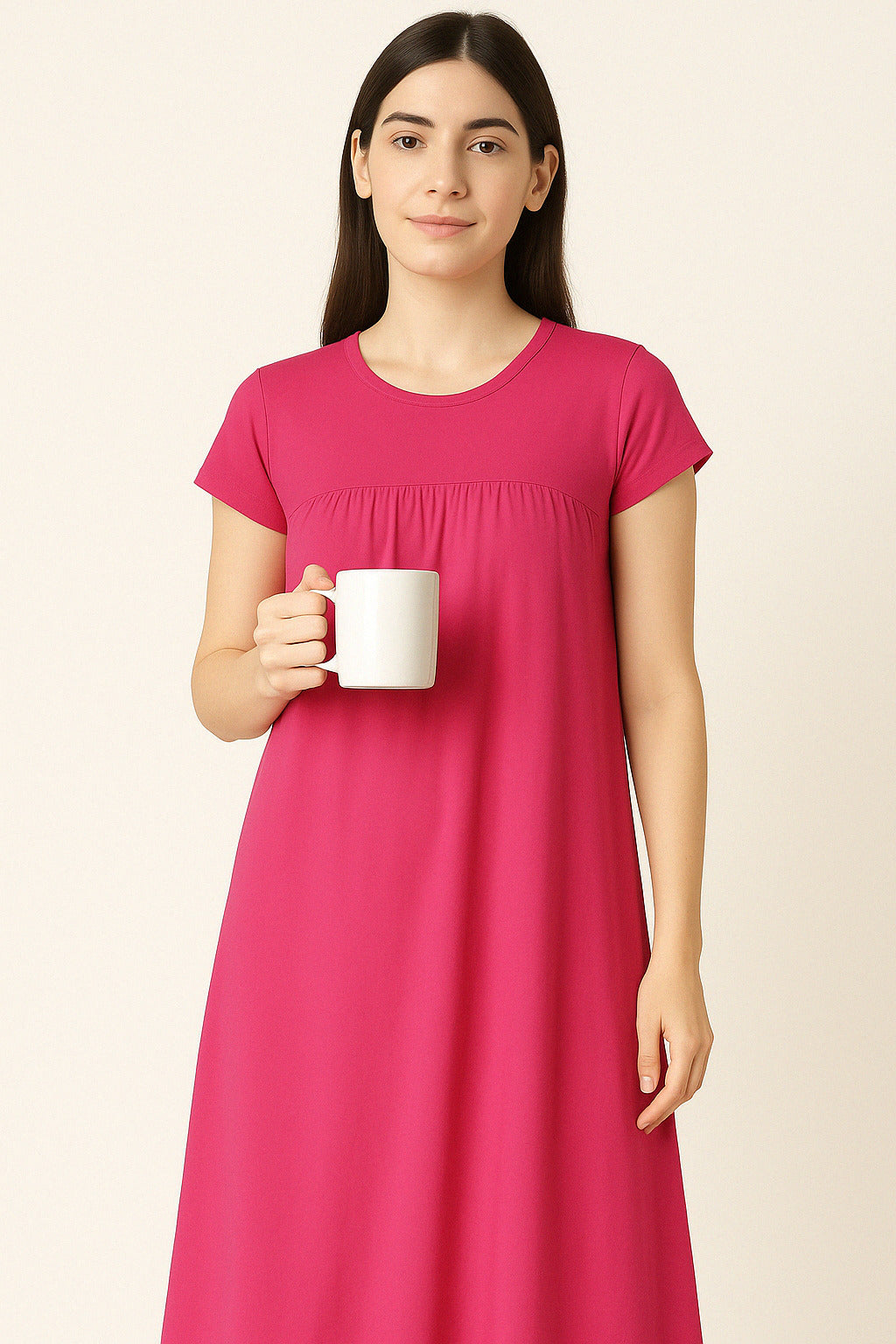 Zebu Solid Round Neck Half Sleeve nightdress (pack of 1)