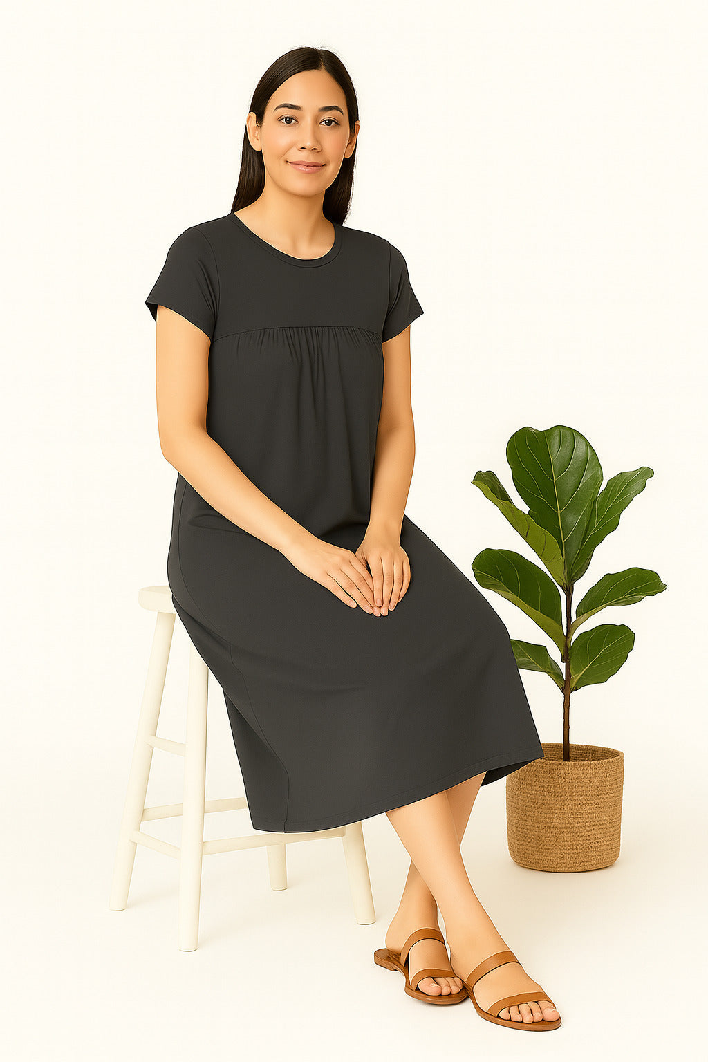 Zebu Solid Round Neck Half Sleeve nightdress (pack of 1)