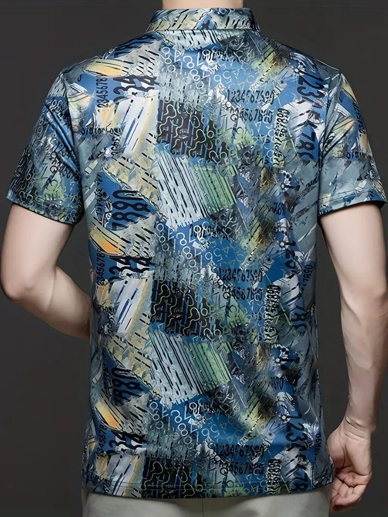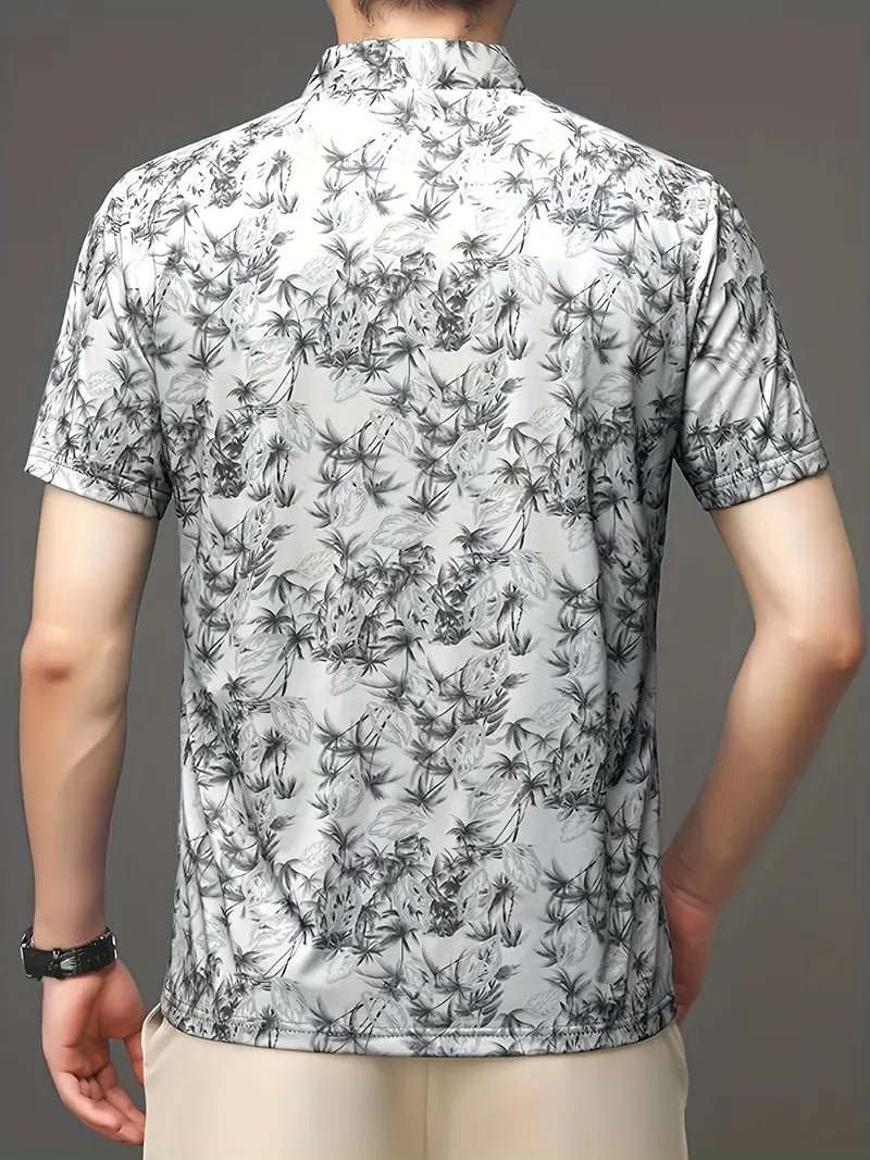 Zebu Men's All Over Printed Polo Zip Neck Polyester T-shirt (pack of 1)