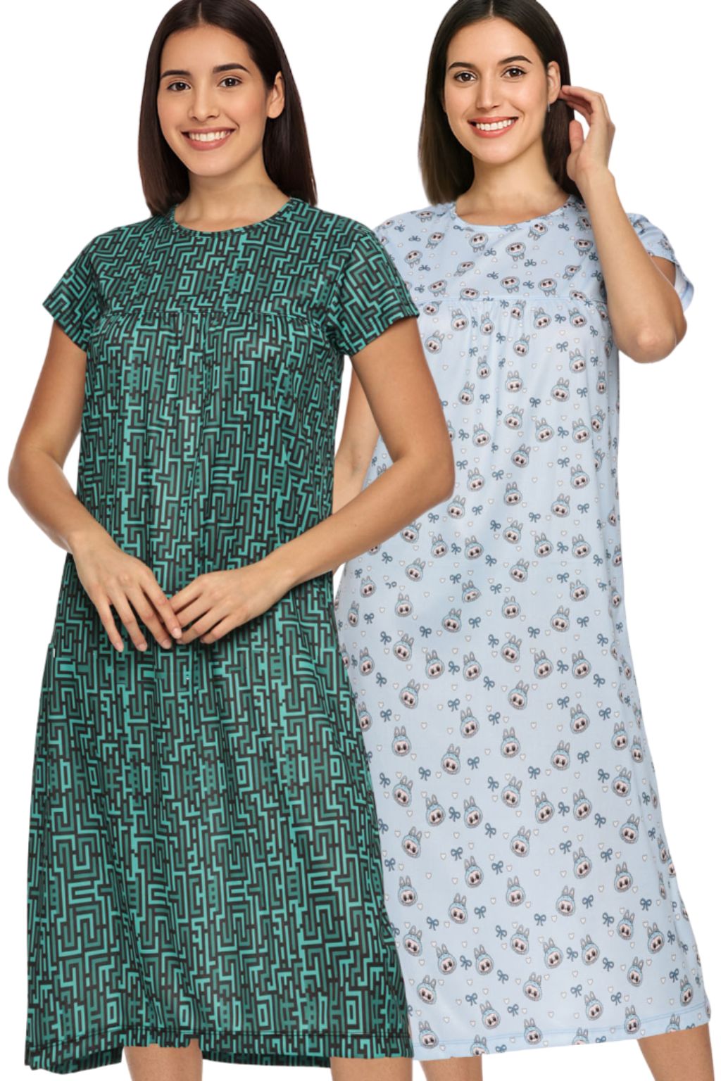 Zebu All Over Printed Round Neck Half Sleeve nightdress (pack of 2)