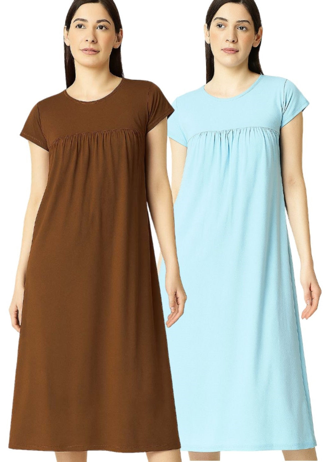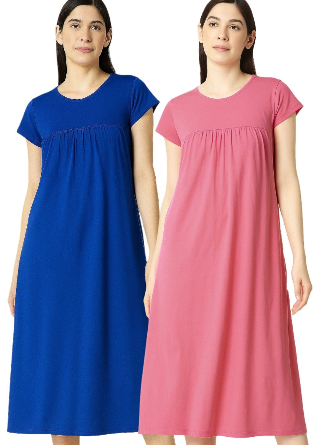 Zebu Solid Round Neck Half Sleeve nightdress (pack of 2)