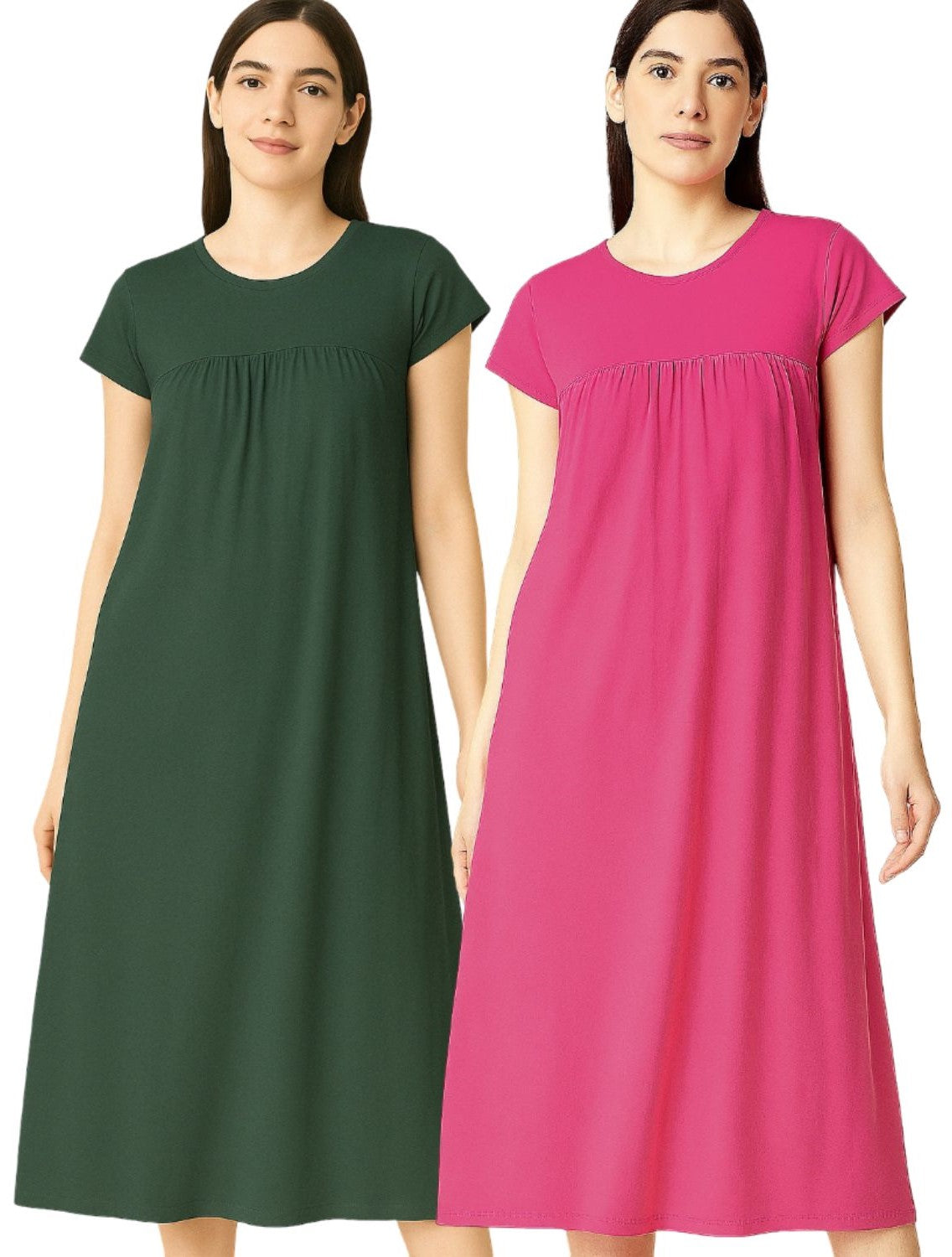 Zebu Solid Round Neck Half Sleeve nightdress (pack of 2)