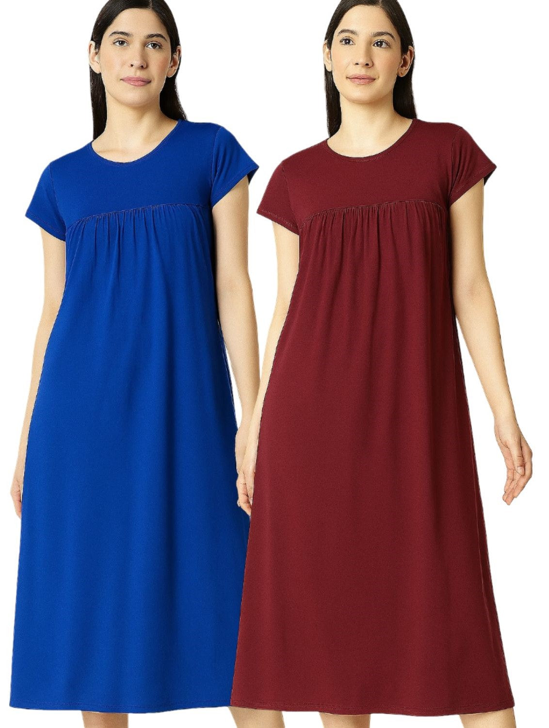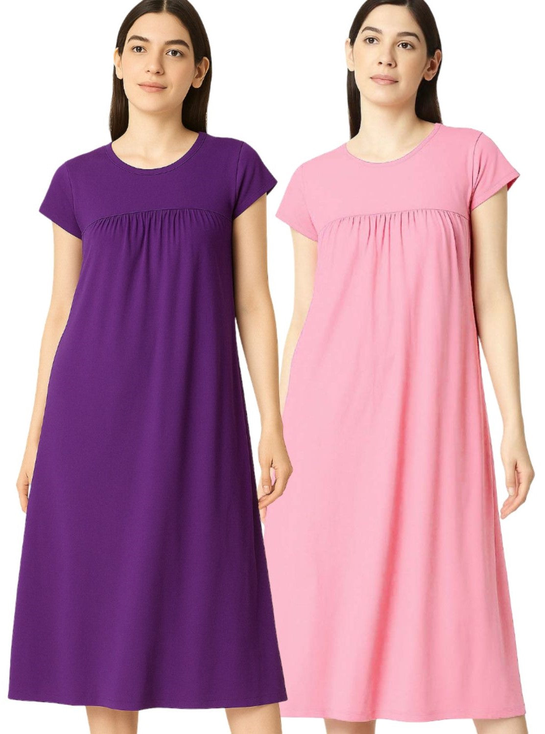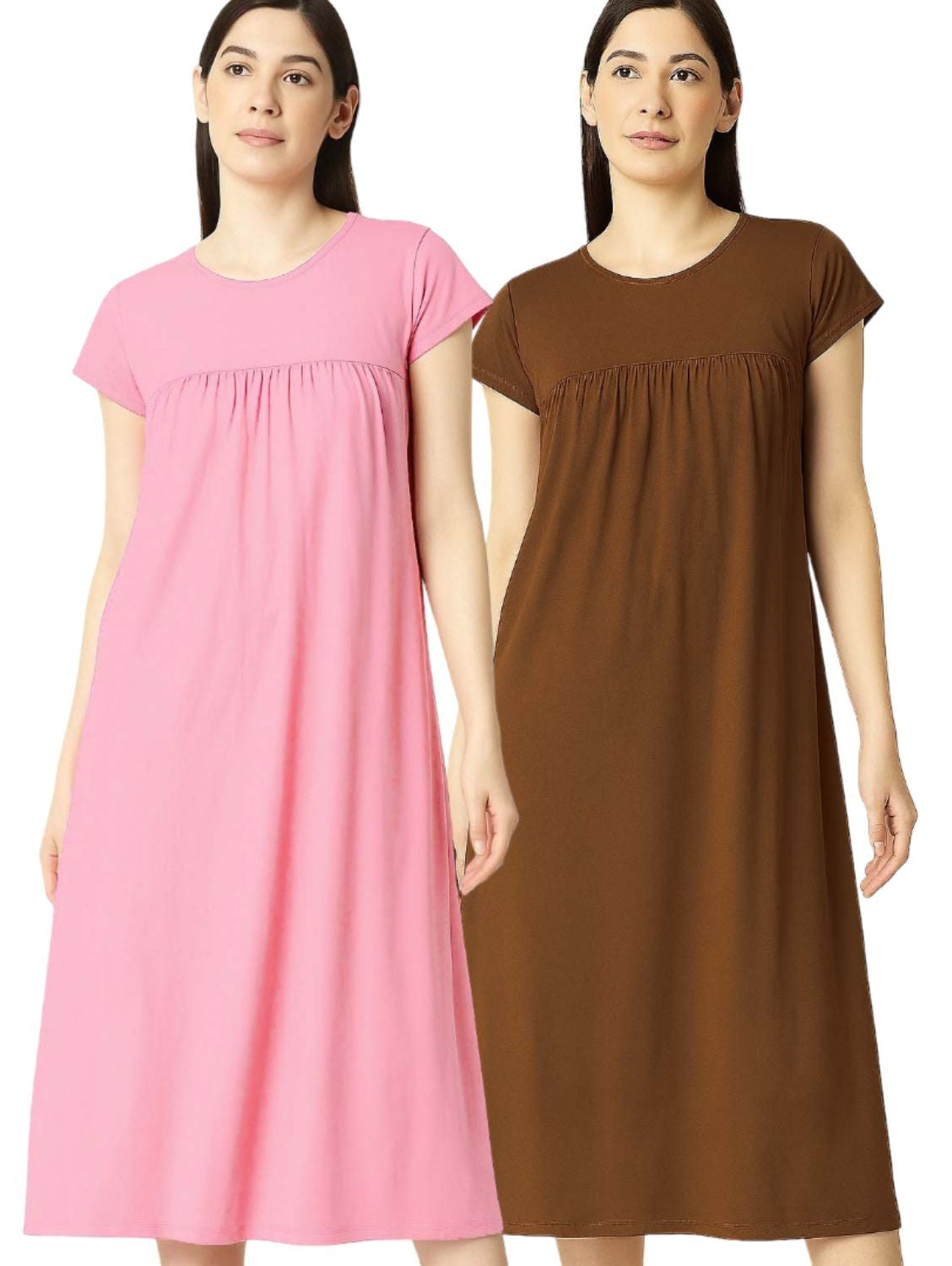 Zebu Solid Round Neck Half Sleeve nightdress (pack of 2)