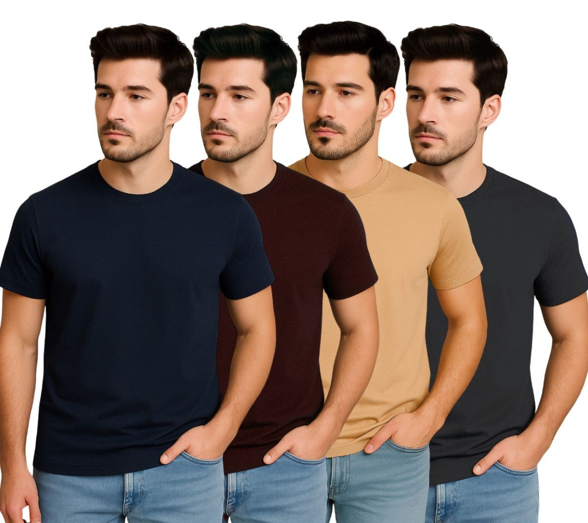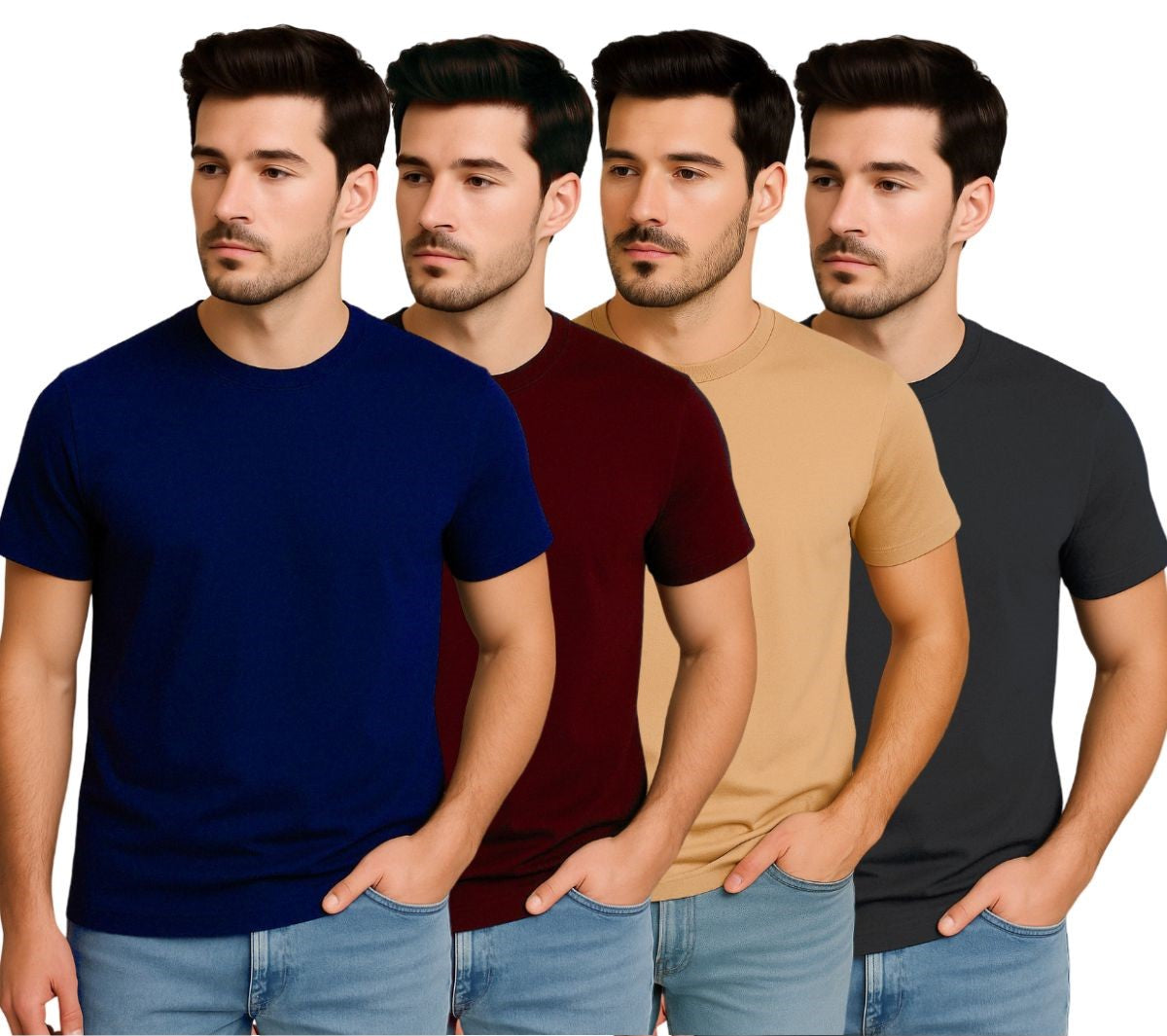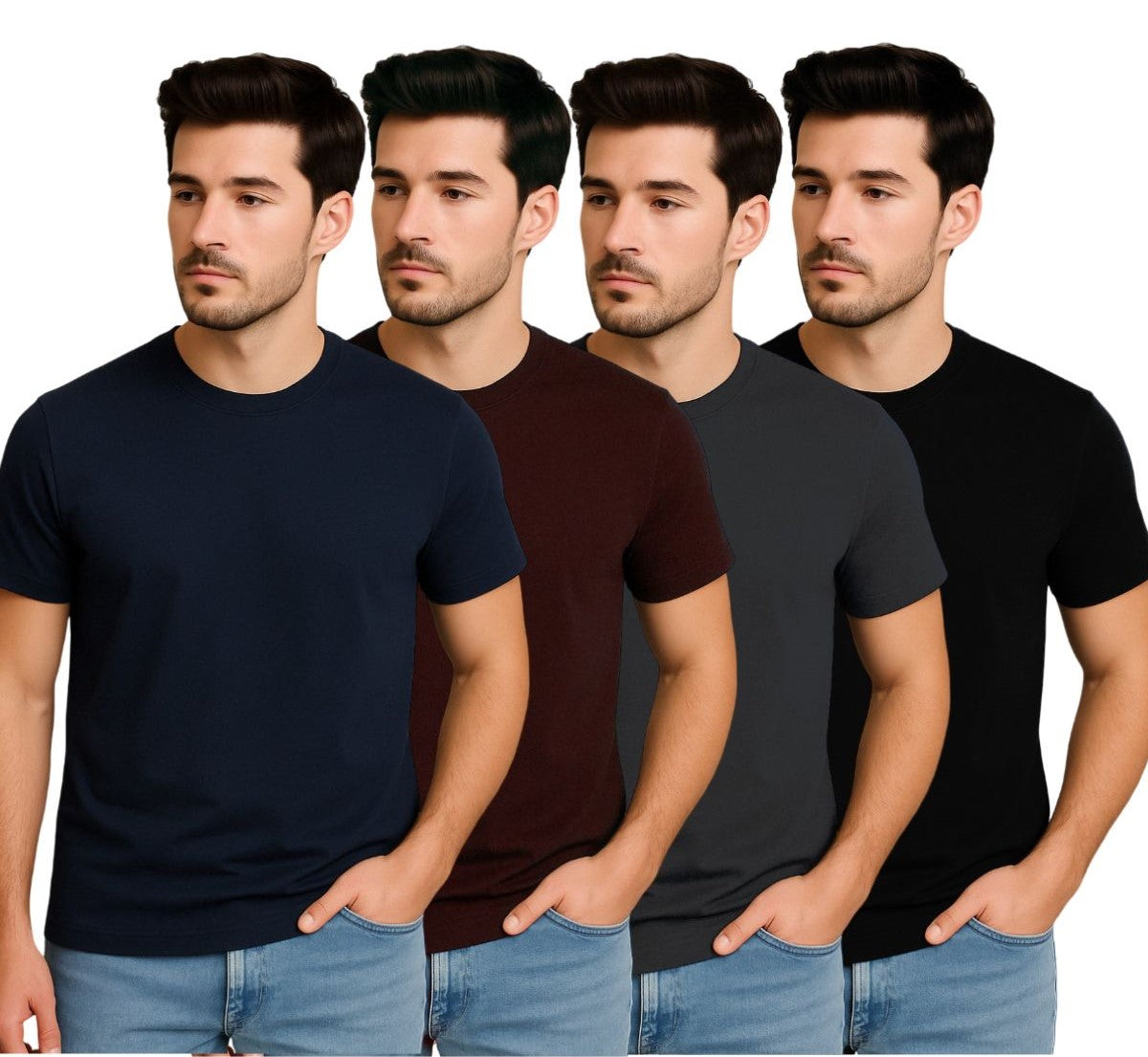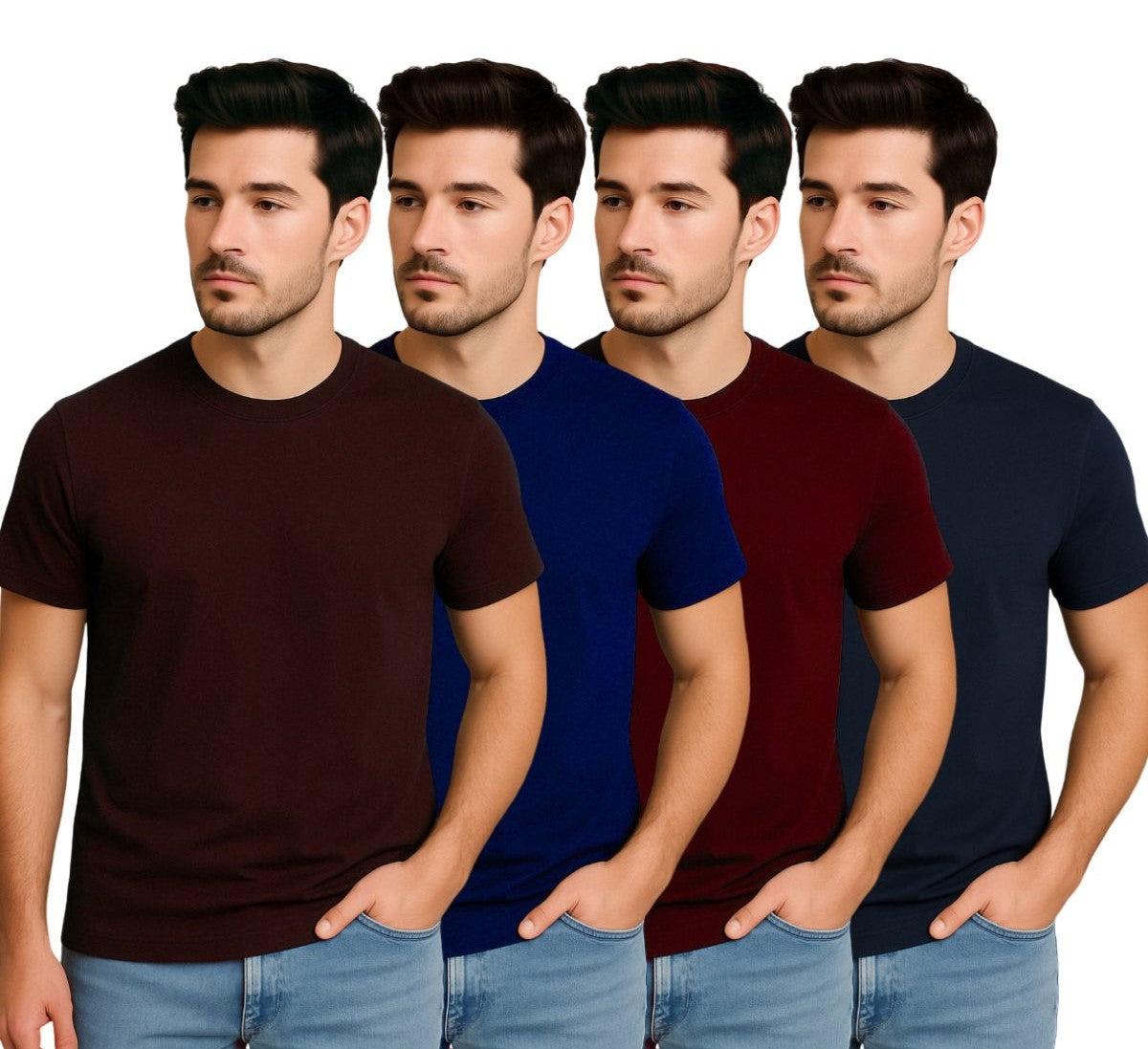 This is a ZEBU Men's Solid Round Neck T-shirt (pack of 4).  Polyester has High Quality and excellent durability and moisture-wicking properties. In this, we have used Polyester fabric is resistant to shrinking, stretching, and wrinkling, making it ideal for everyday wear and active use. This has a wide range of colors manufactured from the most experienced hands with a lot of care. This is suitable for all kinds of formal as well as casual occasions.