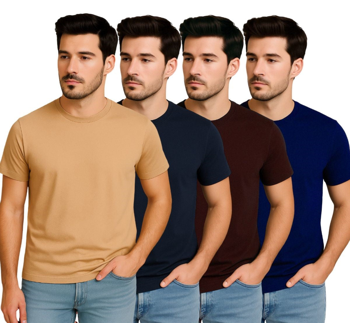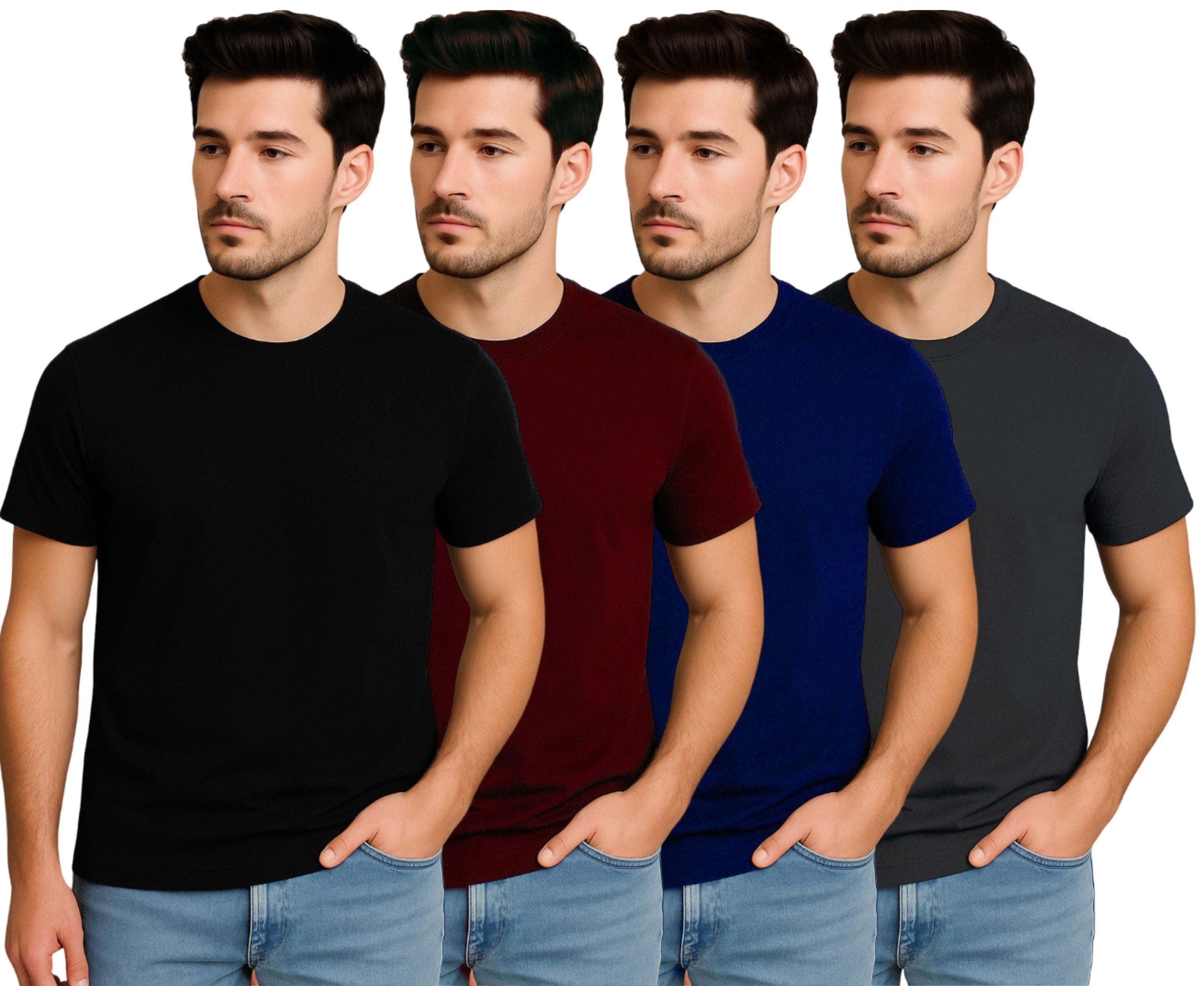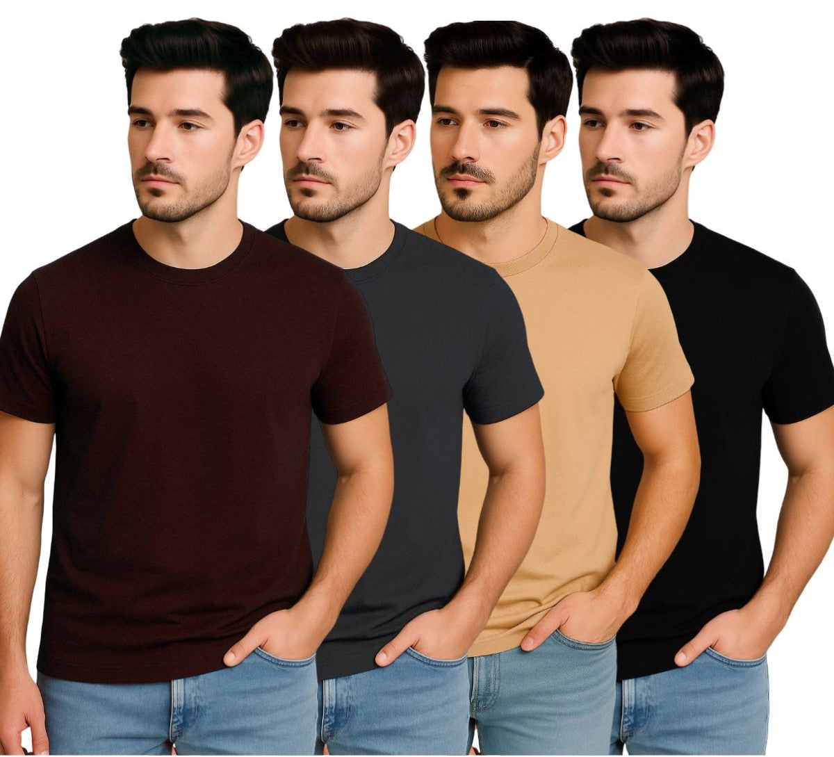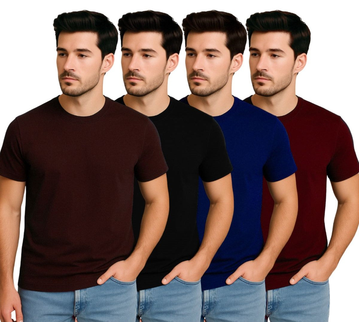 This is a ZEBU Men's Solid Round Neck T-shirt (pack of 4).  Polyester has High Quality and excellent durability and moisture-wicking properties. In this, we have used Polyester fabric is resistant to shrinking, stretching, and wrinkling, making it ideal for everyday wear and active use. This has a wide range of colors manufactured from the most experienced hands with a lot of care. This is suitable for all kinds of formal as well as casual occasions.