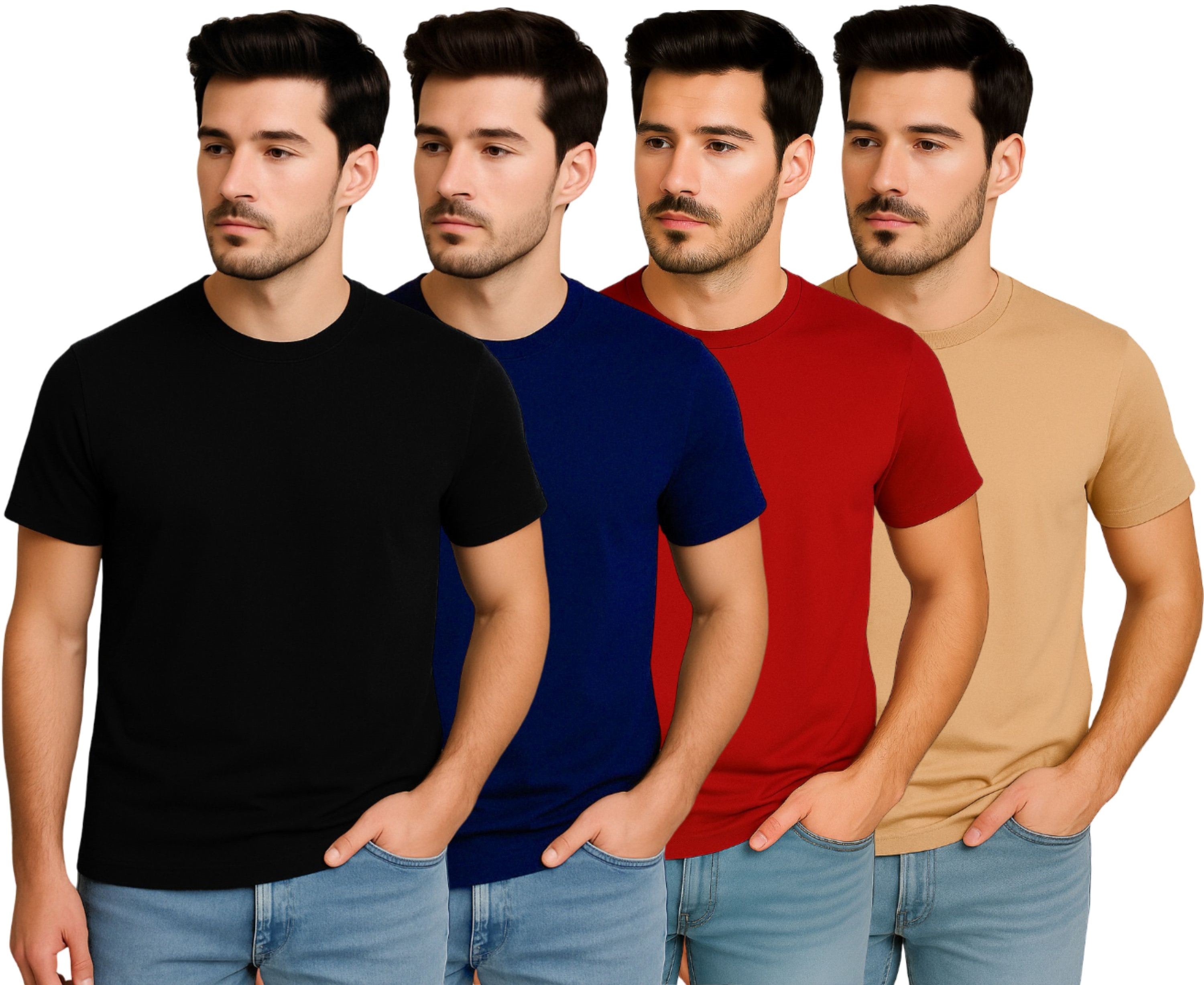 Zebu Men's Solid Round Neck Polyester T-shirt (pack of 4)