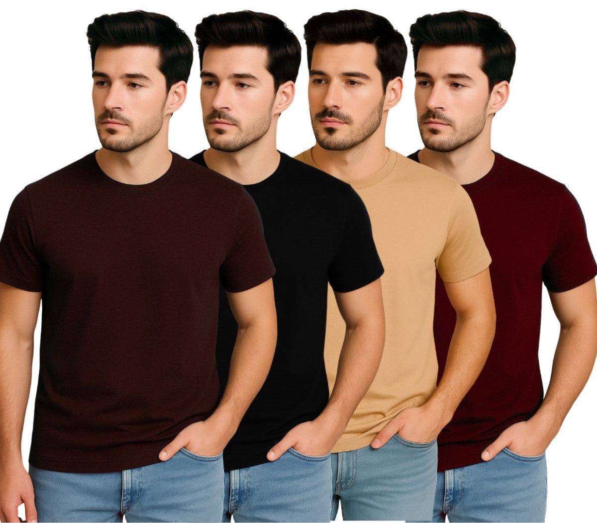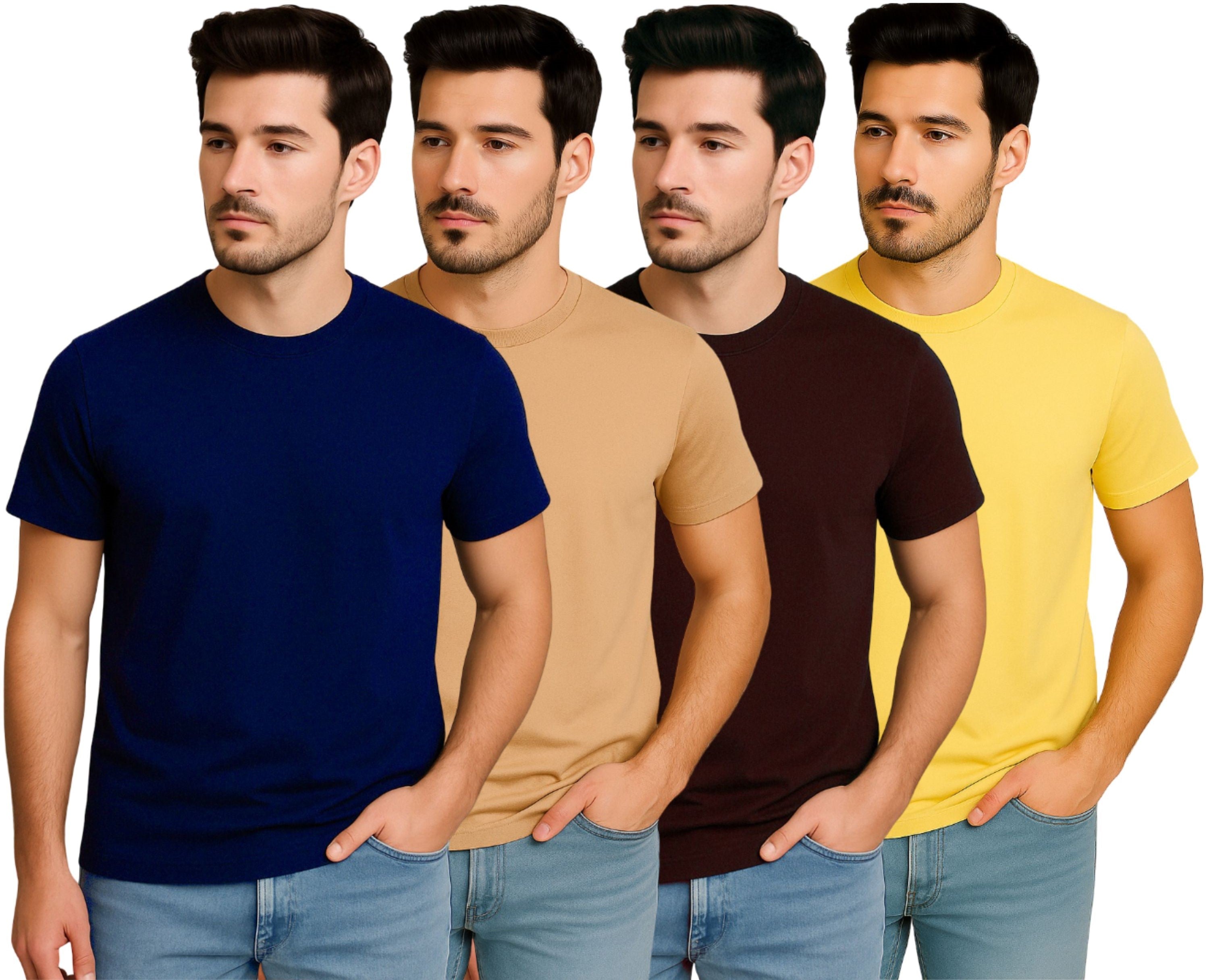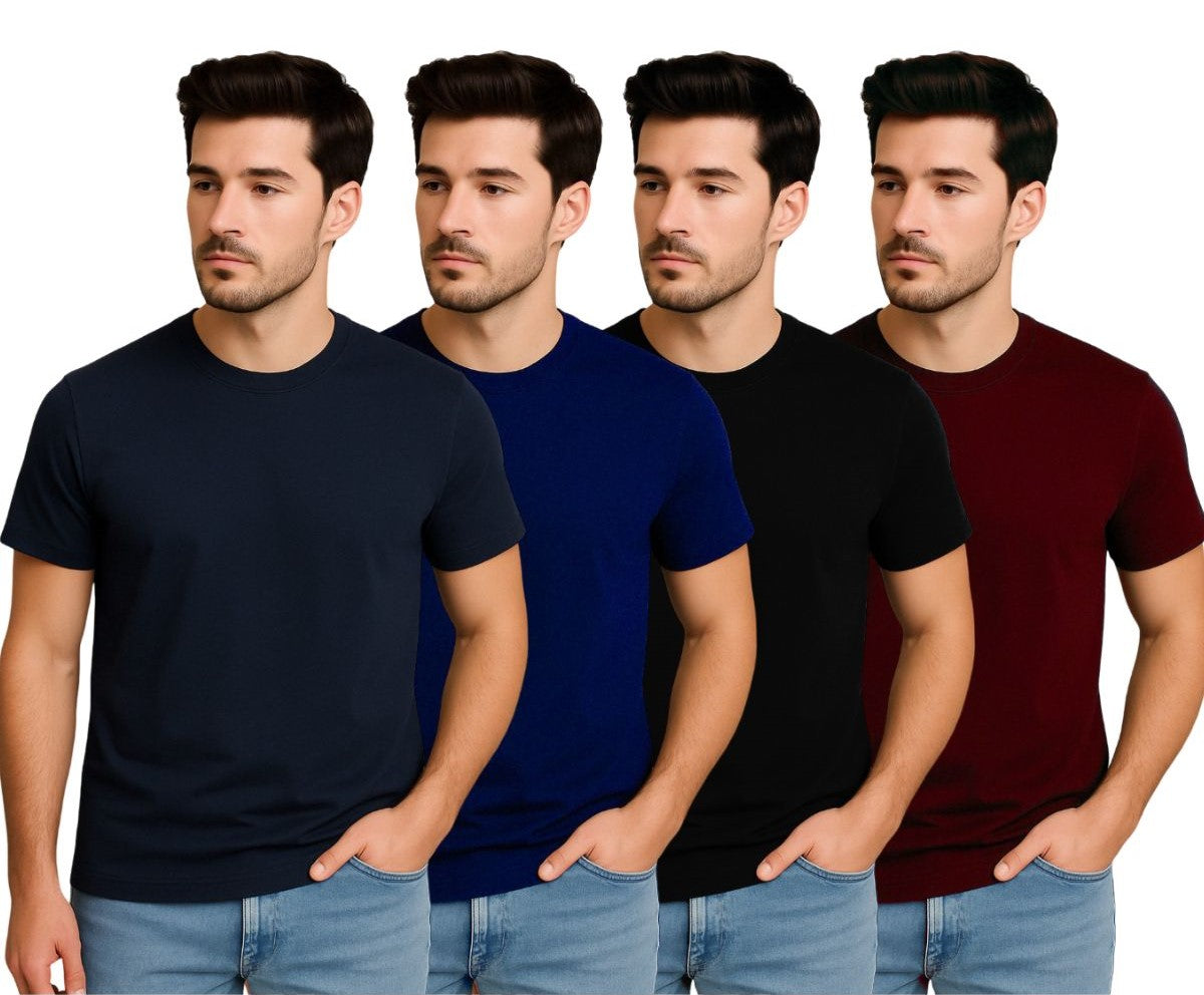 This is a ZEBU Men's Solid Round Neck T-shirt (pack of 4).  Polyester has High Quality and excellent durability and moisture-wicking properties. In this, we have used Polyester fabric is resistant to shrinking, stretching, and wrinkling, making it ideal for everyday wear and active use. This has a wide range of colors manufactured from the most experienced hands with a lot of care. This is suitable for all kinds of formal as well as casual occasions.